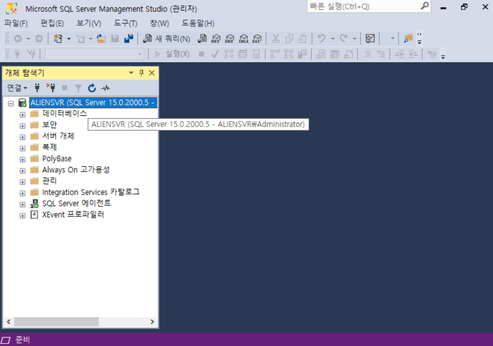 데이터베이스 엔진도 제대로 설치되고, 연결에도 문제가 없다면 개체 탐색기에 관련 정보가 표시되면서 관리 작업을 수행할 수 있는 상태가 됩니다.