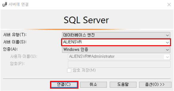 Windows인증은 SQL Server가 설치가 되어 있는 Windows OS자체가 인증 수단이 되는 방법입니다.