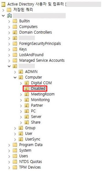 비활성화된 컴퓨터 개체를 따로 모아 놓는 OU를 생성하고 해당 OU로 컴퓨터 개체를 이동하여 관리하기 위한 방법입니다.