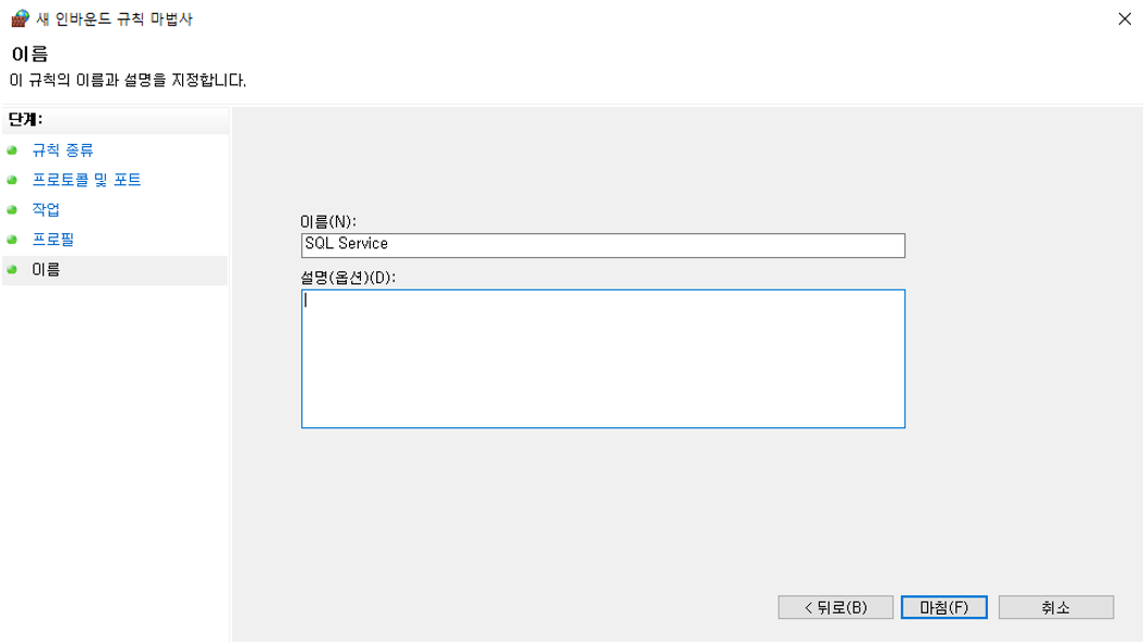 SQL Server 방화벽 오픈 설정 (2개의 SQL Server에서 모두 진행)