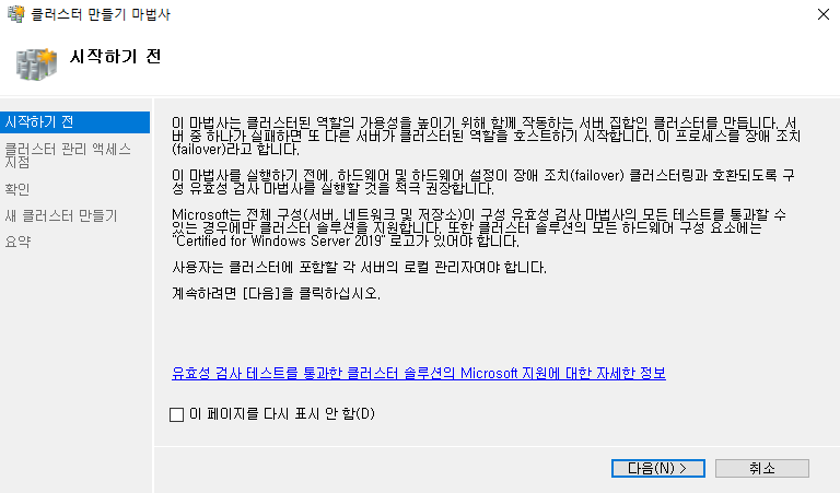 1. 클러스터 만들기 마법사에서 다음을 클릭합니다.