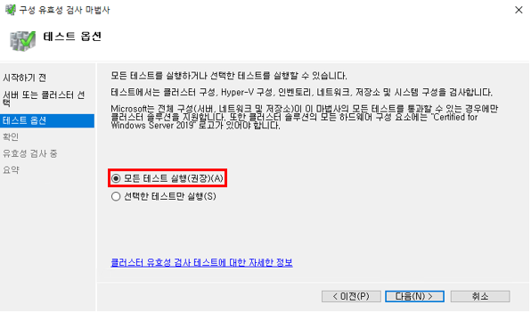 5. 테스트 옵션 선택 후 다음을 클릭합니다.