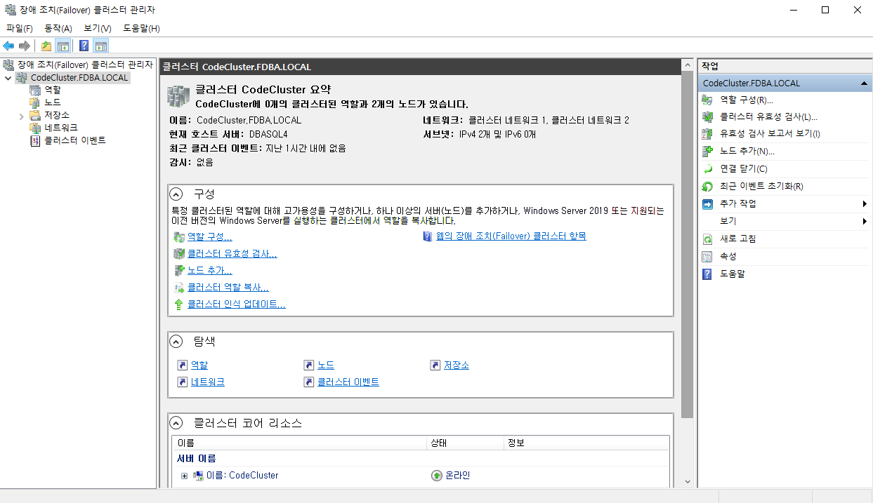 1. 서버 관리자 > 도구 > 장애 조치 클러스터 관리자를 선택합니다.