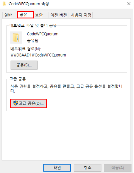 쿼럼 설정을 위한 공유 폴더 설정 (AD Server에서 진행)