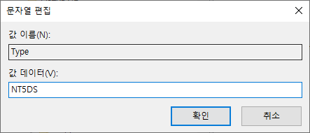이후 값 데이터를 NT5DS로 입력한 후 확인을 누릅니다.