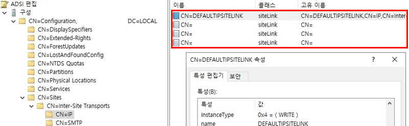만약 CN=DEFAULTIPSITELINK를 사용하지 않고 있다면 제외하셔도 됩니다.